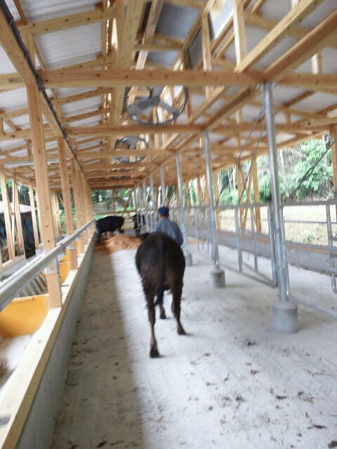 とうとう、新牛舎に牛を導入(移動)させました!生後約13ヶ月齢の群れを移動させました。みんな心地よく育ってくだされ!