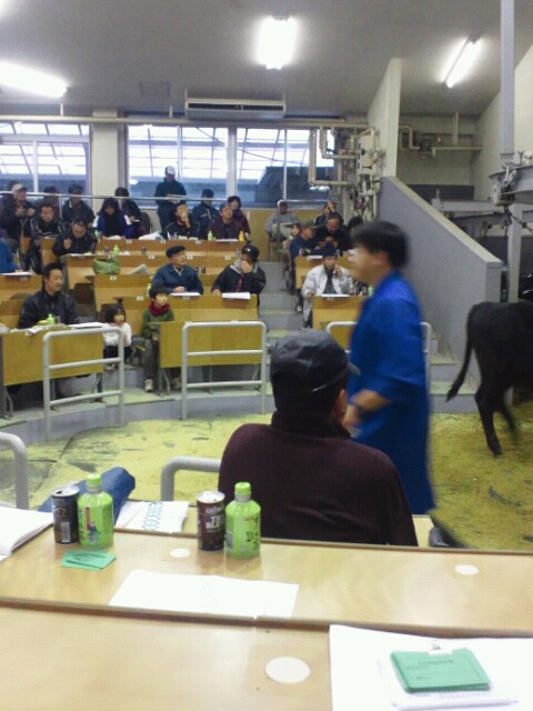 12月1日、2日は2ヶ月に一度の素牛導入でした。場所はいつもの長崎県は壱岐市場。いつもの様に2日間で850頭もの仔牛のセリが行われましたー。   ただ…前の全国和牛能力共進会での長崎県の好成績も伴ってセリ価格が高い!全国からの購買者の数も増えてる感じで困ります。(T_T)後ろでは生産農家の人達がかたずをのんでます。子供たちも参加?「何頭、買う予定?」そして夜はわたくし、壱岐の若手の生産農家の方達と意見交流会(?)大変勉強になりますねぇ。(^^)/いつもありがとうございます。